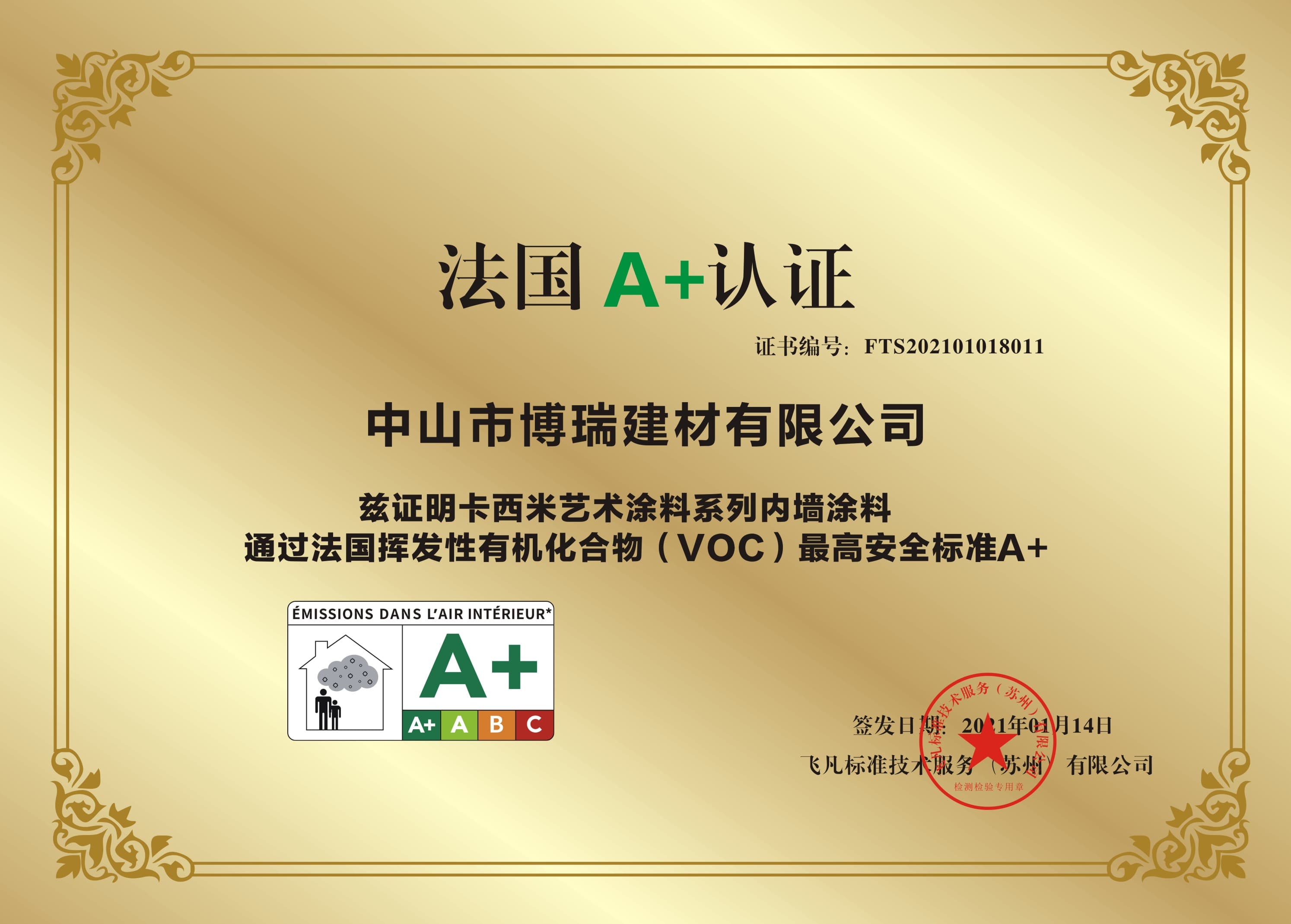 法國揮發(fā)性有機化合物(VOC)最高安全標準法國A+認證